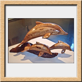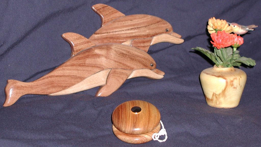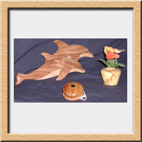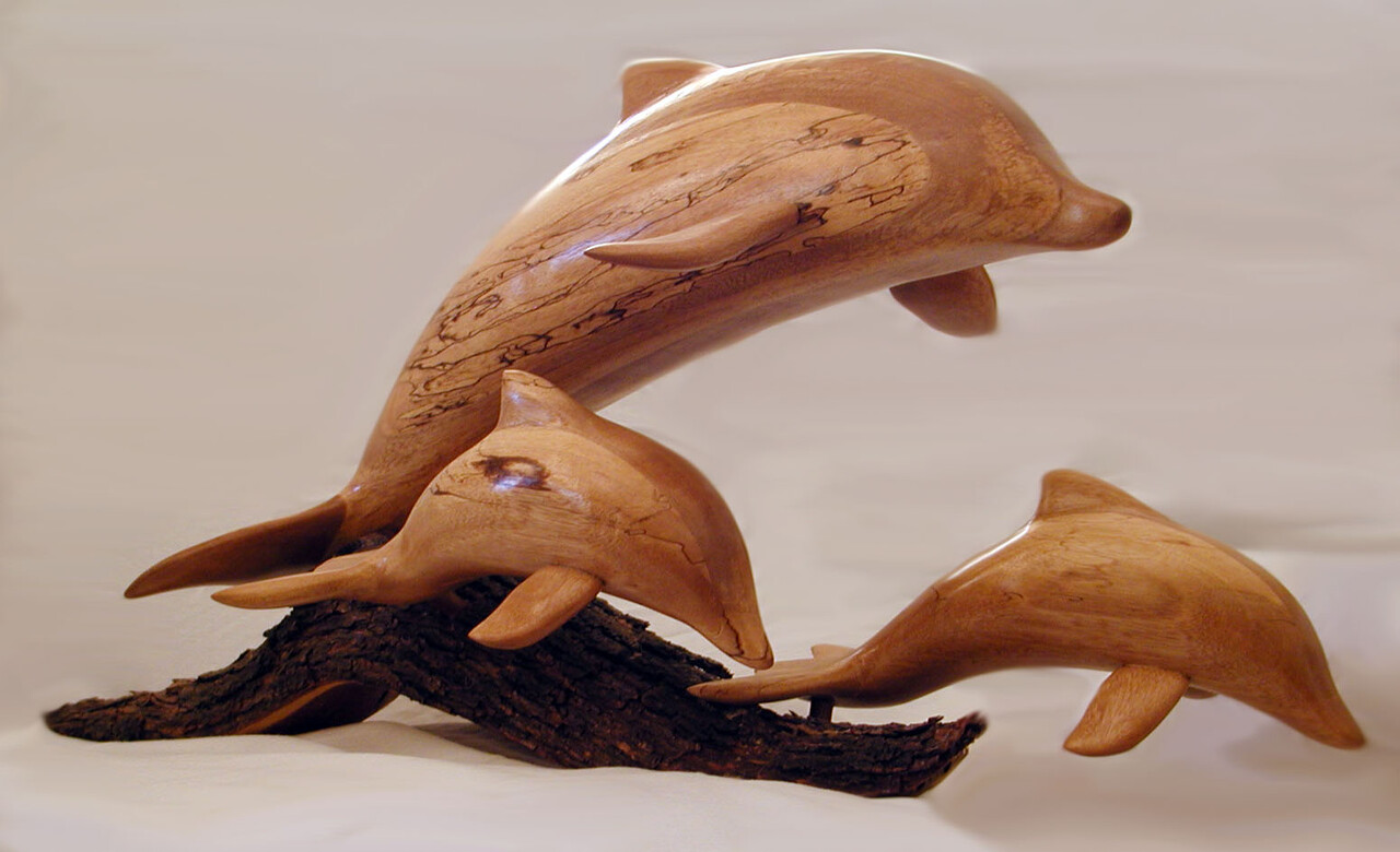 Below are some more experiments with displaying some of my woodworking as 3D models. The Dulcimer on the left was modelled with Lightwave3D, utilizing wood procedural texturing many years ago, and I recently renewed the texturing with pictures from the actual dulcimer. The Dulcimer on the right was captured with PolyCam so it looks fine from a distance, but details such as frets and strings are much better on the modelled dulcimer. The Jumping Dolphins were also created with PolyCam. The Flat Bottom Canoe and the Redwood Birdfeeder were also modelled many years ago, with just slight upgrades to the texturing. Click on a thumbnail image below and a new window will appear in which you can drag the model around with the left mouse button and zoom in or out with the mouse scroll wheel or with the pinch or spread two finger techniques on a tablet or phone.