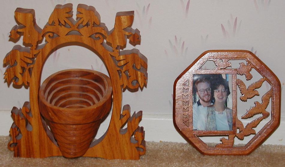I have begun experimenting with photogrammetry software to capture some 3D scans of my woodworking pieces. The first 3D object below, the Coyote Basket was modelled with Lightwave3D, utilizing procedural texturing many years ago. I have tried using multiple programs to capture some more of the scrollsaw projects, but the Scrollsaw Cherry Bowl created with Meshy is the only one I have been pleased with. I am using Model Viewer to display any successfully captured models. Click on any of the thumbnail images below and a new window will appear in which you can drag the model around with the left mouse button and zoom in or out with the mouse scroll wheel or with the pinch or spread two finger techniques on a tablet or phone.