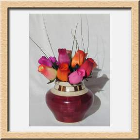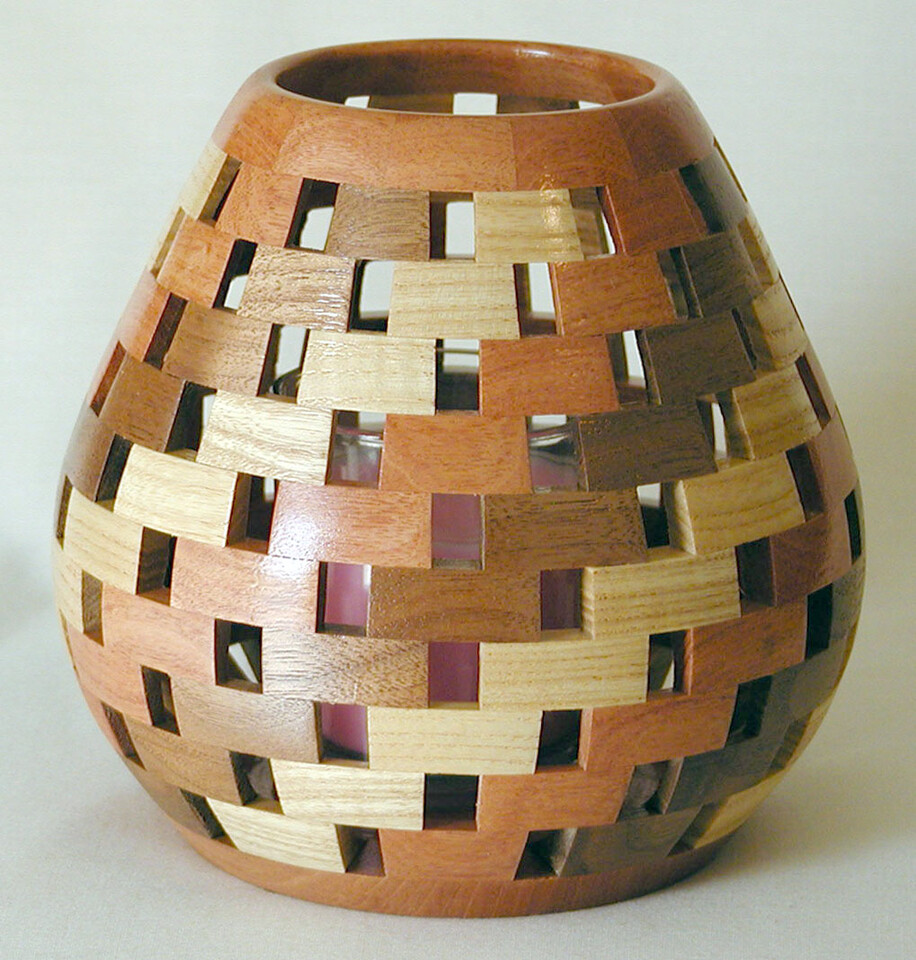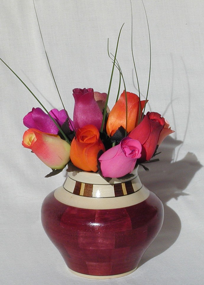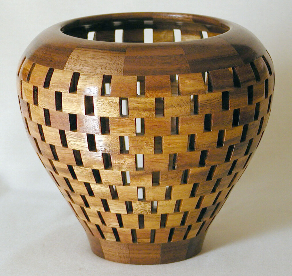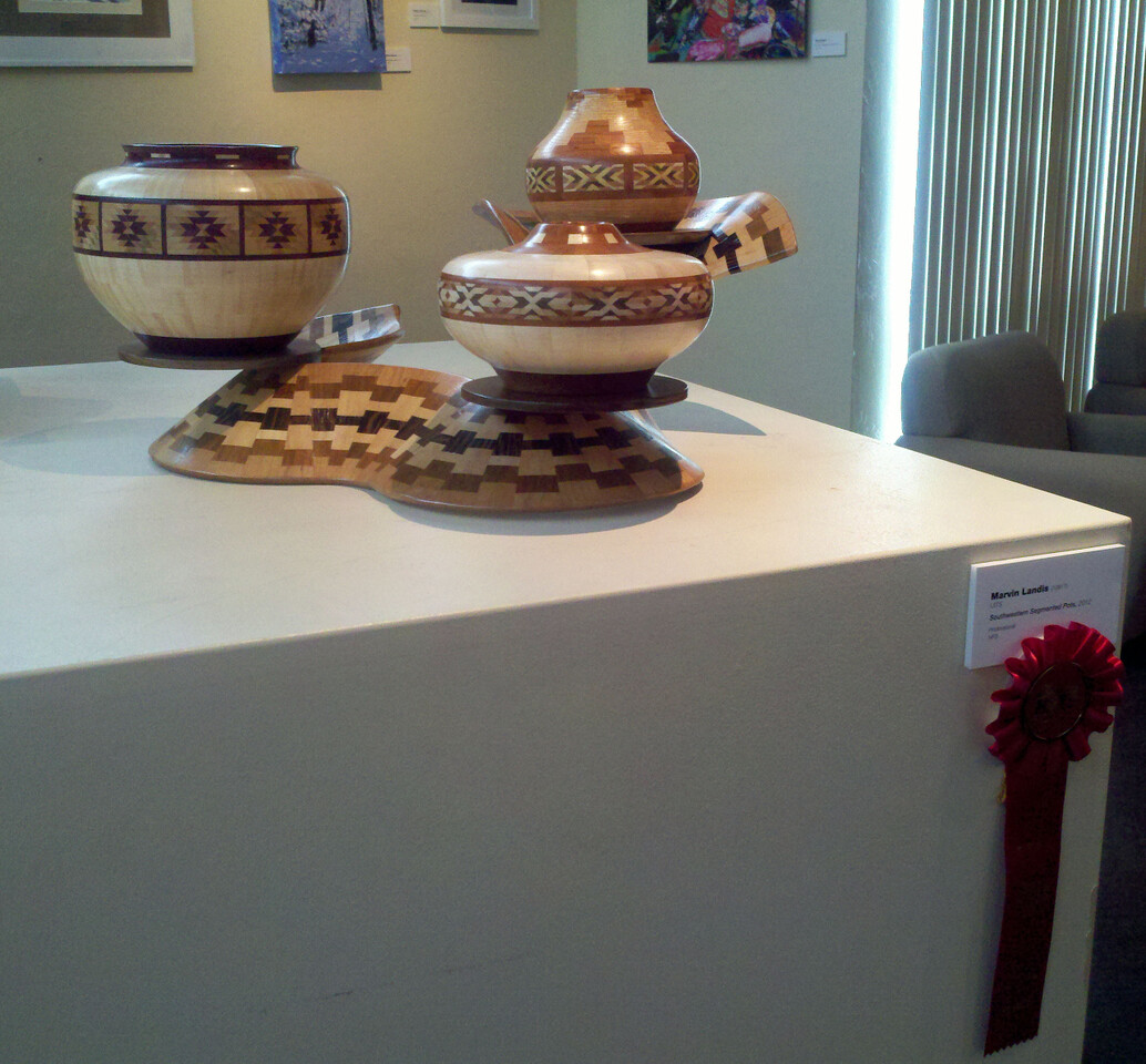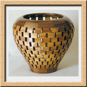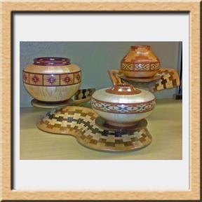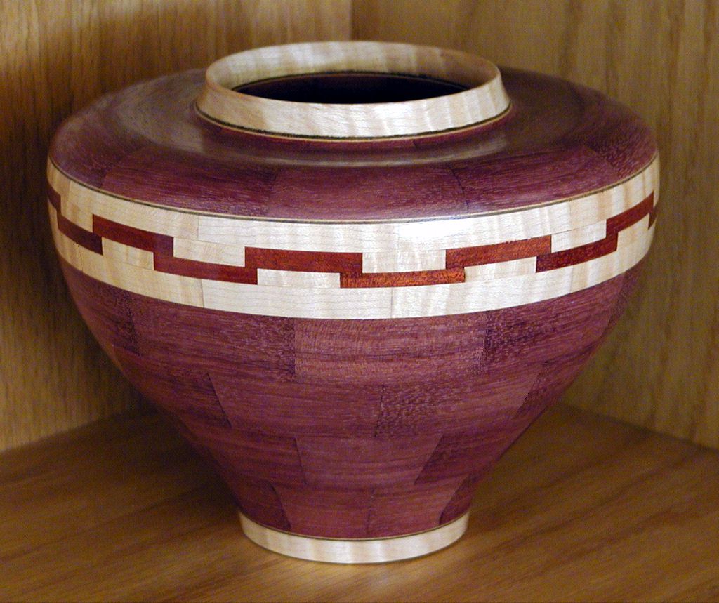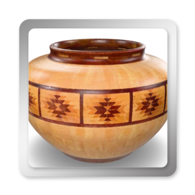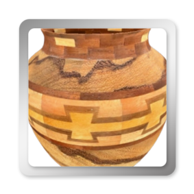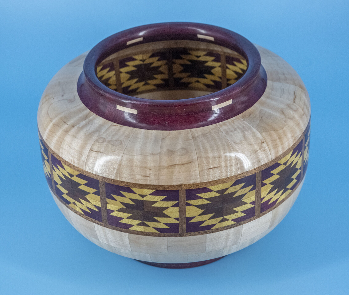 I have been asked many times about how the southwest design feature rings in many of these segmented vessels were created. The process includes quite a bit of cutting, gluing and clamping but it is actually a much easier process than most people imagine. I created a simple web page that demonstrates the general principles used to construct these southwest patterns, so check it out if you want to explore using the technique in your own woodworking adventures.