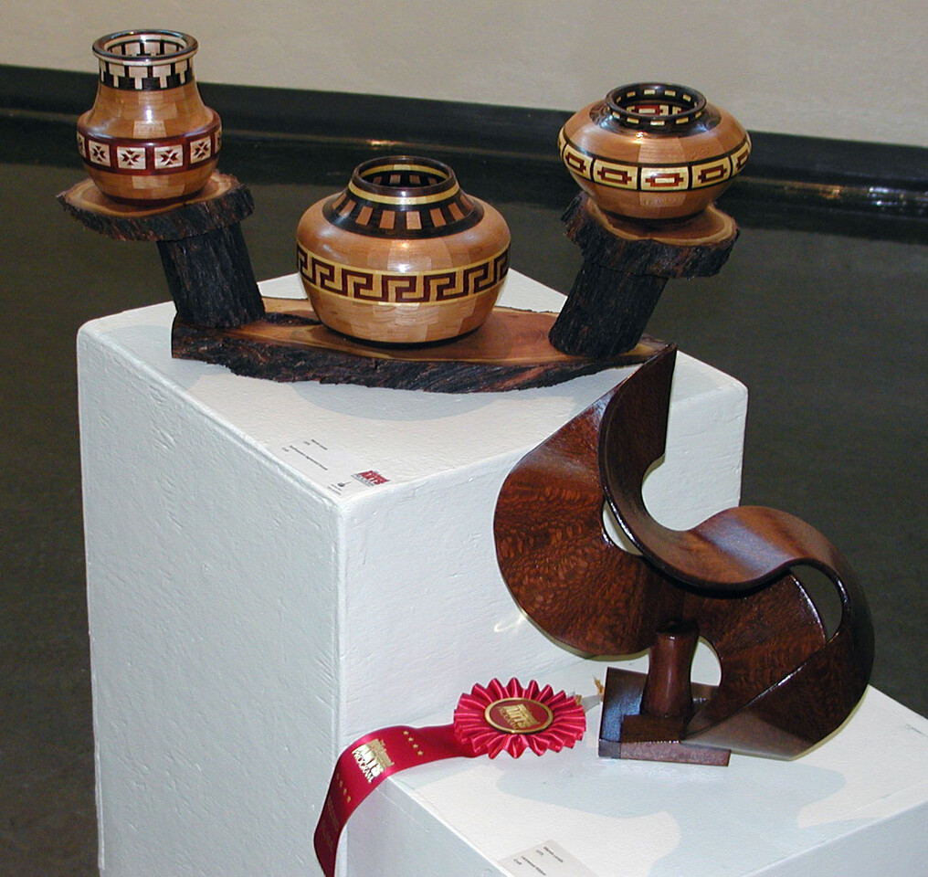 I have begun experimenting with photogrammetry software to capture some 3D scans of my woodworking pieces. Currently I have used Agisoft Metashape and the Polycam website to capture some scans with mixed results. I am using Model Viewer to display the successfully captured models. Click on any of the thumbnail images below and a new window will appear in which you can drag the model around with the left mouse button and zoom in or out with the mouse scroll wheel or with the pinch or spread two finger techniques on a tablet or phone.
