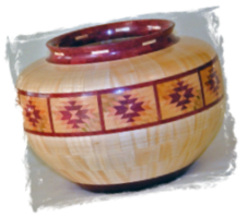 Segmented woodturning has recently become a favorite of mine. I particularly enjoy designing bowls and vases with southwestern patterns in the feature rings. Computer software such as the Segmented Project Planner and Woodturner Pro assist in creating both open and closed segmented vessel shapes and designs. Adding the Diamond Border Planner or Lamination Pro to their respective programs allows for designing of a huge variety of feature ring designs from laminated strips of different wood species. The "southwest blanket" designs you see in many of my feature rings were made possible by those programs.